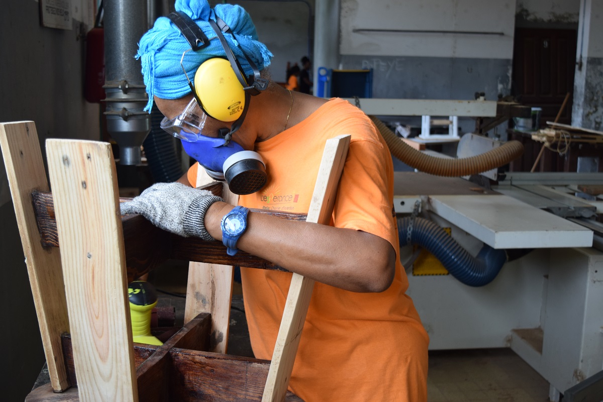 À travers ses Ateliers Chantiers d’Insertion (ACI), « Jaden Lesperans » et « Recyk Bwa », l’association favorise l’acquisition de compétences techniques et transversales adaptées aux besoins du marché du travail local.