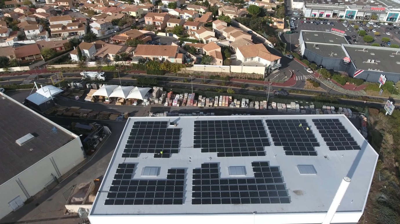 Installée sur le toit du M. Bricolage d’Agde, cette centrale Albioma Solaire France est constituée de 320 panneaux d’une puissance unitaire de 310 Wc (99,20 kWc au total).