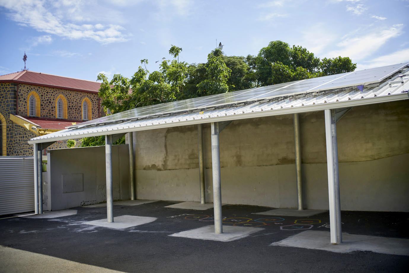 Desde a sua construção, o pátio solar alimenta a escola com energia elétrica, fornece abrigo para os estudantes e permite falar com eles sobre a questão das energias renováveis de uma forma muito concreta. Graças a uma ferramenta digital, eles podem monitorar o consumo de energia elétrica de sua escola em tempo real e entender melhor as questões de autonomia energética, algo tão crucial nos territórios desconectados dos sistemas interligados continentais.